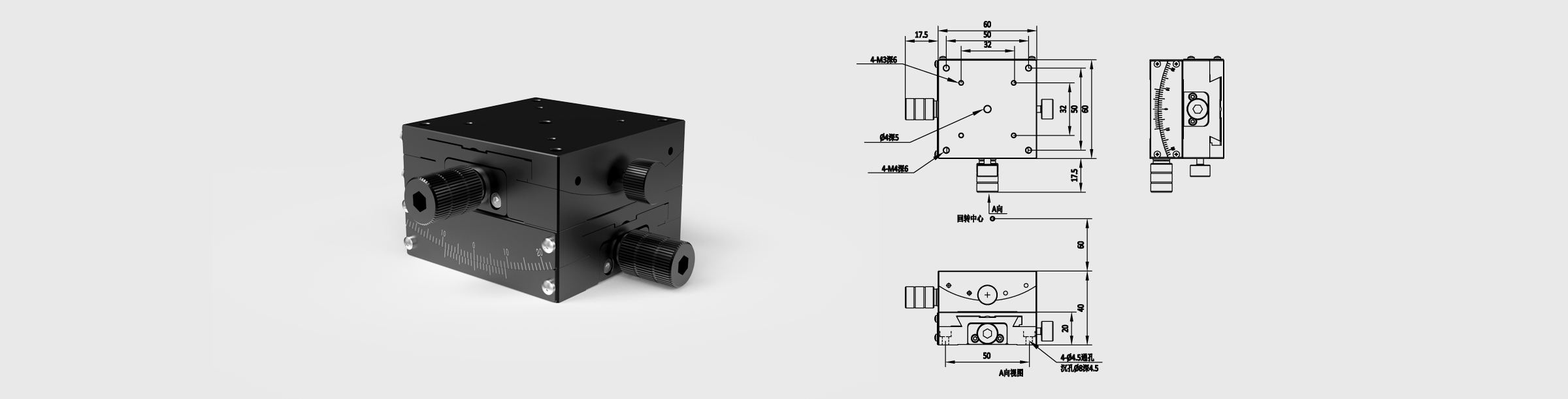 新品 αβ轴测角燕尾槽式手动位移台 台面尺寸60x60mm 中心高度60mm