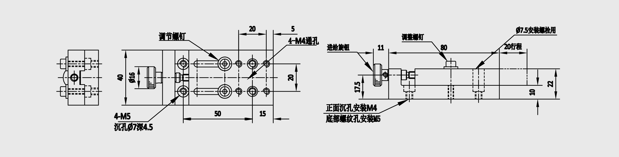 *单轴-X轴 *导向键槽作为导向机构,通过固定螺栓可实现强力锁紧 *驱动方式:进给丝杆 *旋钮旋转一圈移动量0.8mm *主体材质-铝合金(本色阳极氧化)/铝合金(黑色阳极氧化) *适用于经典应用组合的模块化调节、无需高精度调整的微调用途 *采用简易调整组件与定制机构时产生的经济、时间成本相比性价比更高