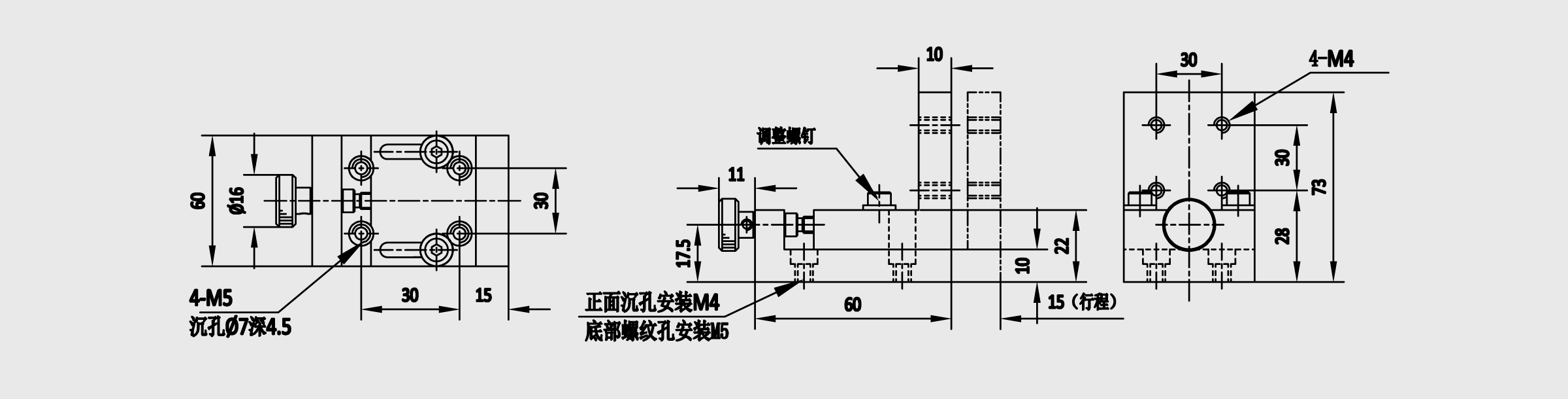 *单轴-X轴 *导向键槽作为导向机构,通过固定螺栓可实现强力锁紧 *驱动方式:进给丝杆 *旋钮旋转一圈移动量0.8mm *主体材质-铝合金(本色阳极氧化)/铝合金(黑色阳极氧化) *适用于经典应用组合的模块化调节、无需高精度调整的微调用途 *采用简易调整组件与定制机构时产生的经济、时间成本相比性价比更高