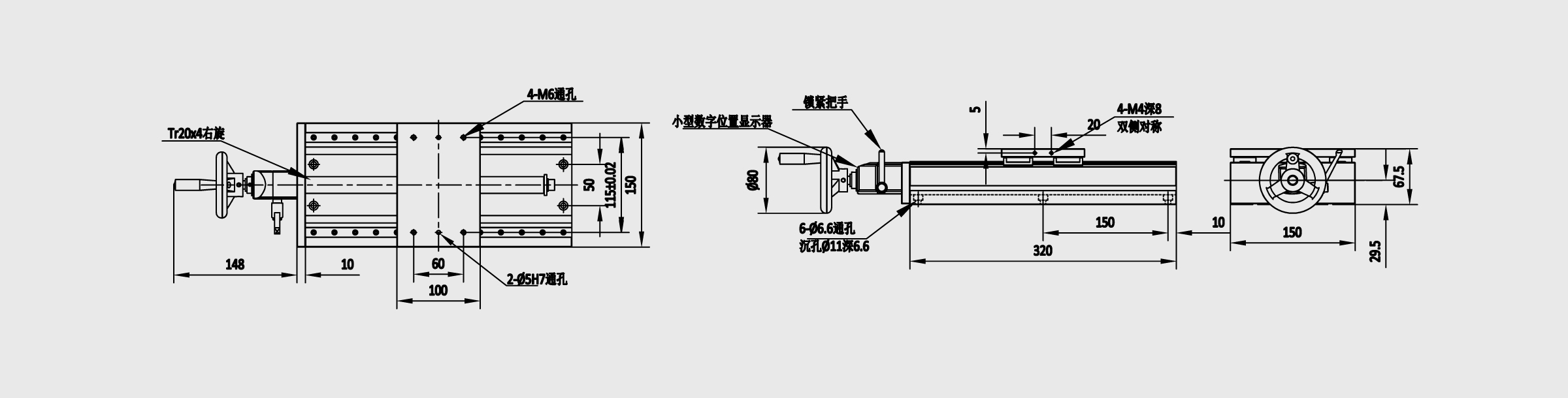 *单轴-X轴 *直线导轨作为导向机构,主要原理是通过回珠槽、滚珠保持器等结构使钢球列作循环运动,从而实现滑块在滑轨上的低摩擦直线运动拥有更高的额定负载及运动精度。 *驱动方式:梯形丝杠型 *主体材质-铝合金(本色阳极氧化) *适用于经典应用组合的模块化调节、无需高精度调整的微调用途 *采用简易调整组件与定制机构时产生的经济、时间成本相比性价比更高 *带计数器,可记录转动圈数