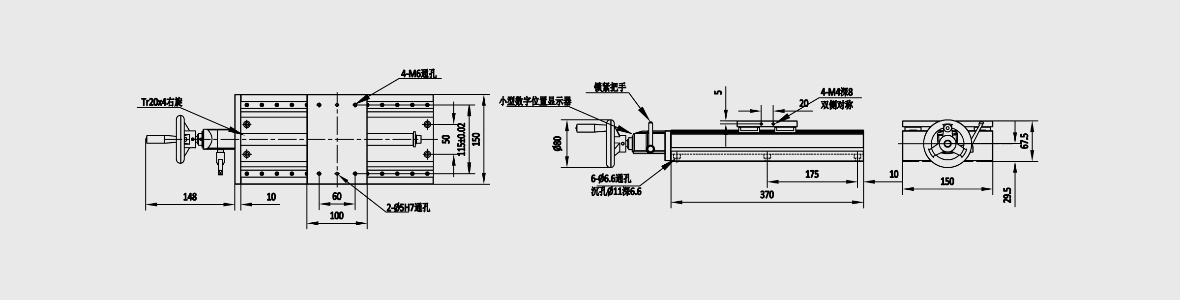 *单轴-X轴 *直线导轨作为导向机构,主要原理是通过回珠槽、滚珠保持器等结构使钢球列作循环运动,从而实现滑块在滑轨上的低摩擦直线运动拥有更高的额定负载及运动精度。 *驱动方式:梯形丝杠型 *主体材质-铝合金(本色阳极氧化) *适用于经典应用组合的模块化调节、无需高精度调整的微调用途 *采用简易调整组件与定制机构时产生的经济、时间成本相比性价比更高 *带计数器,可记录转动圈数
