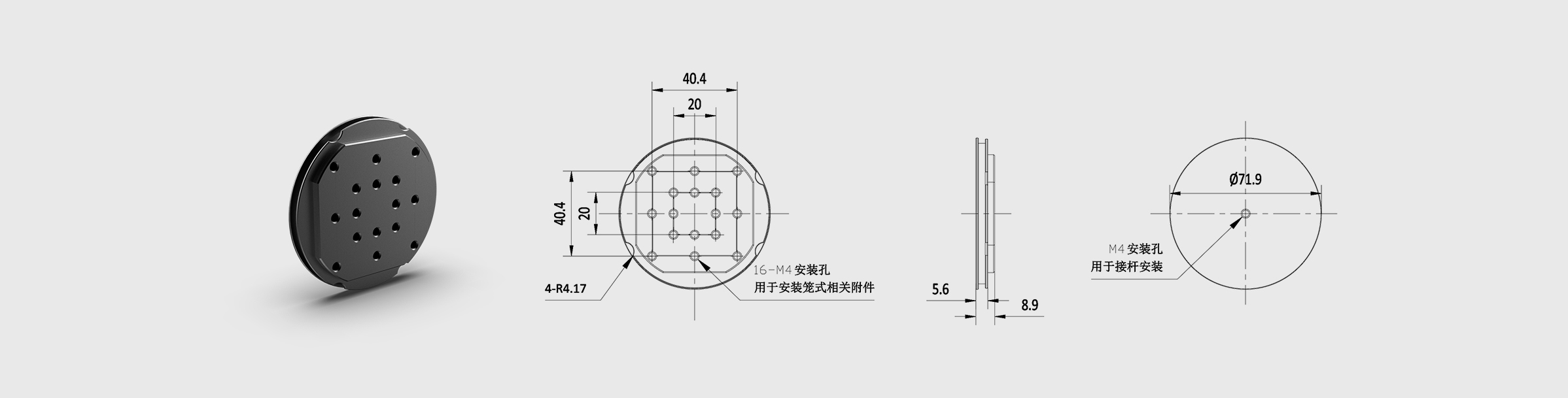 60mm笼式固定笼式立方体平台 M4安装孔