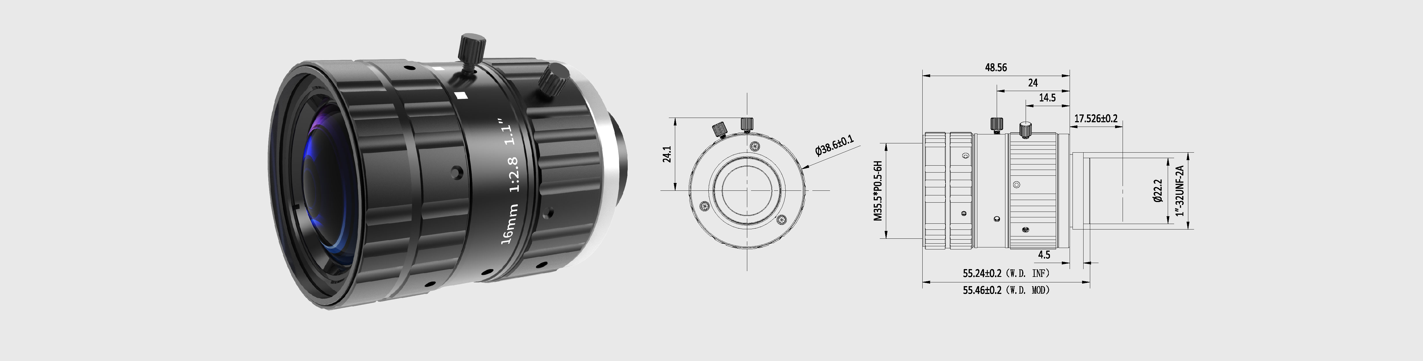 1. 1.1" 大像面设计,匹配1.1" 3.45μm芯片;