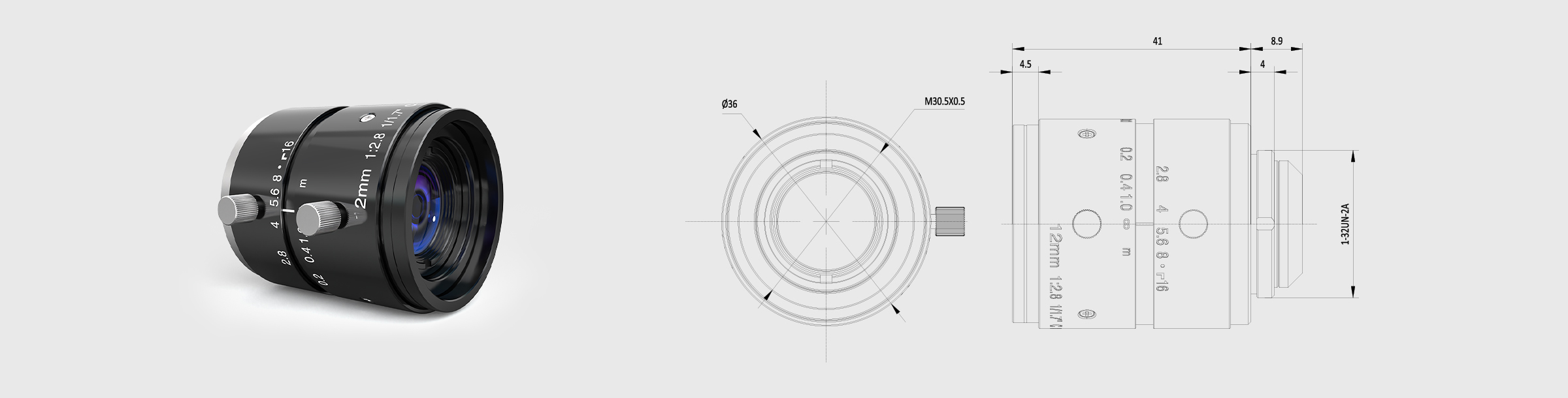 新品 12mm 1/1.7" F2.8 12M 无热化定焦镜头