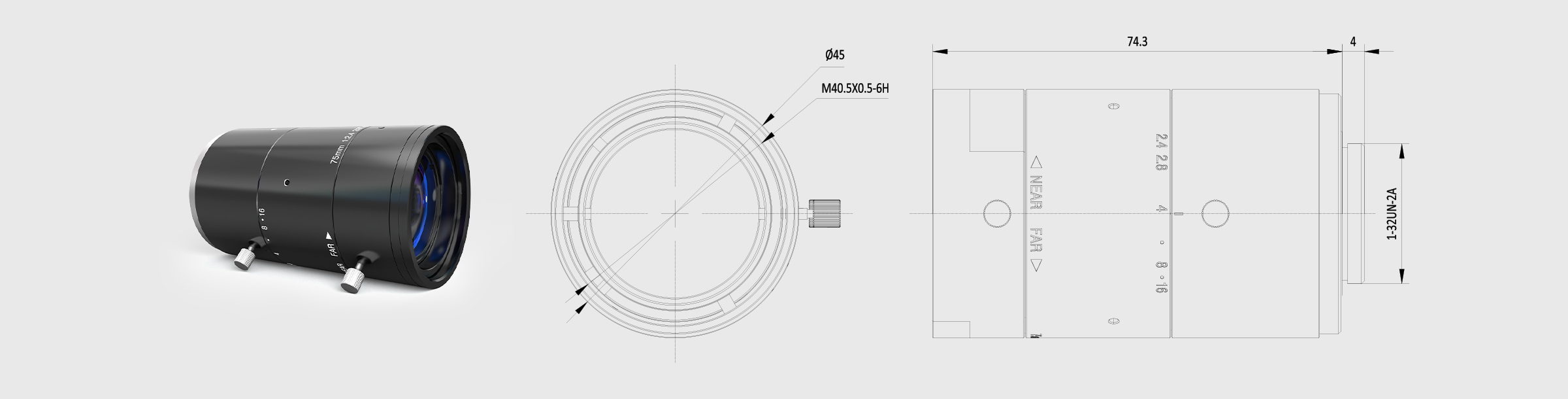 新品 75mm 2/3" F2.4 5M 无热化定焦镜头