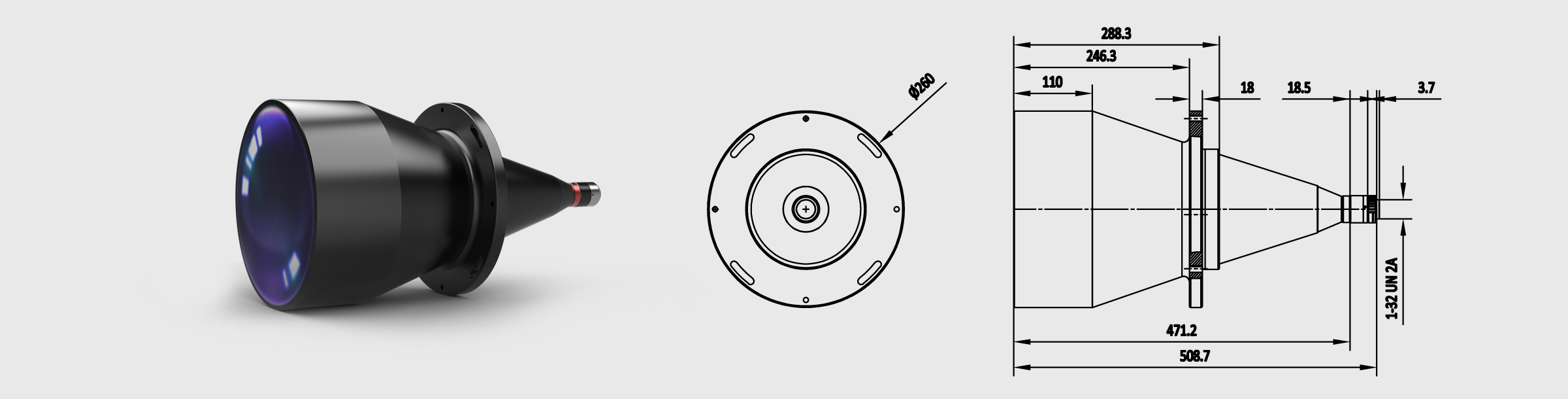 - 镜头尺寸(直径×长度) Ф260×508.7mm