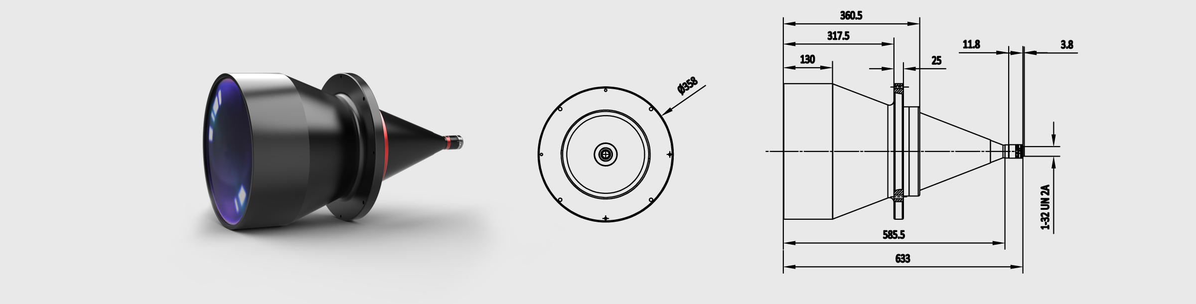 - 镜头尺寸(直径×长度) Ф358×633mm