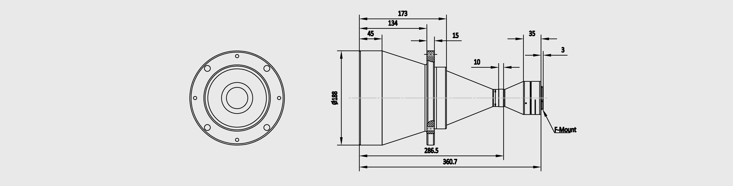 - 镜头尺寸(直径×长度) Ф188×360.7mm