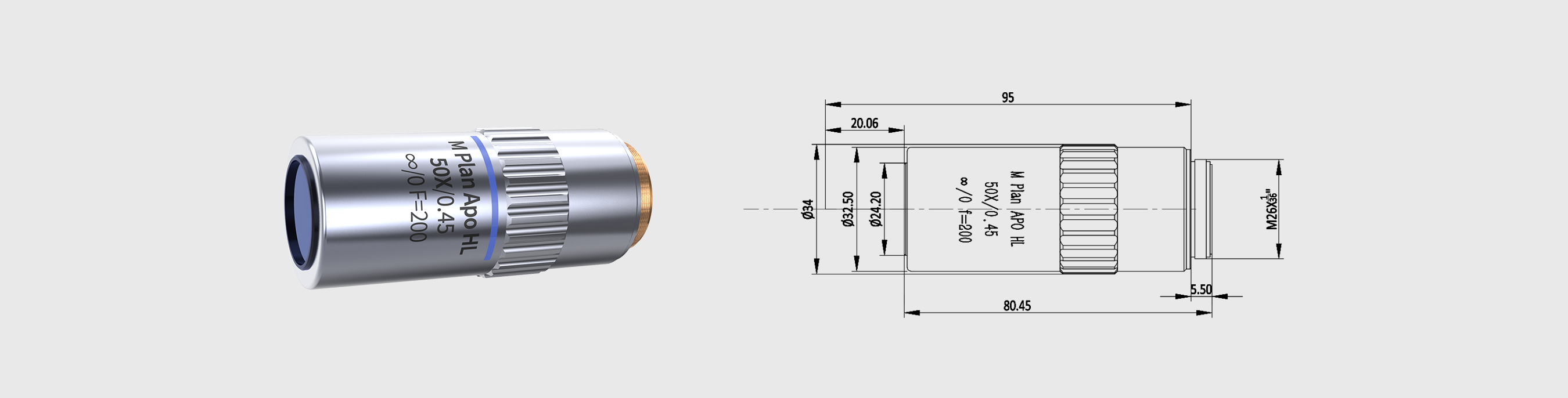 远场校正超长工作距离显微物镜 50× M Plan Apo VIS