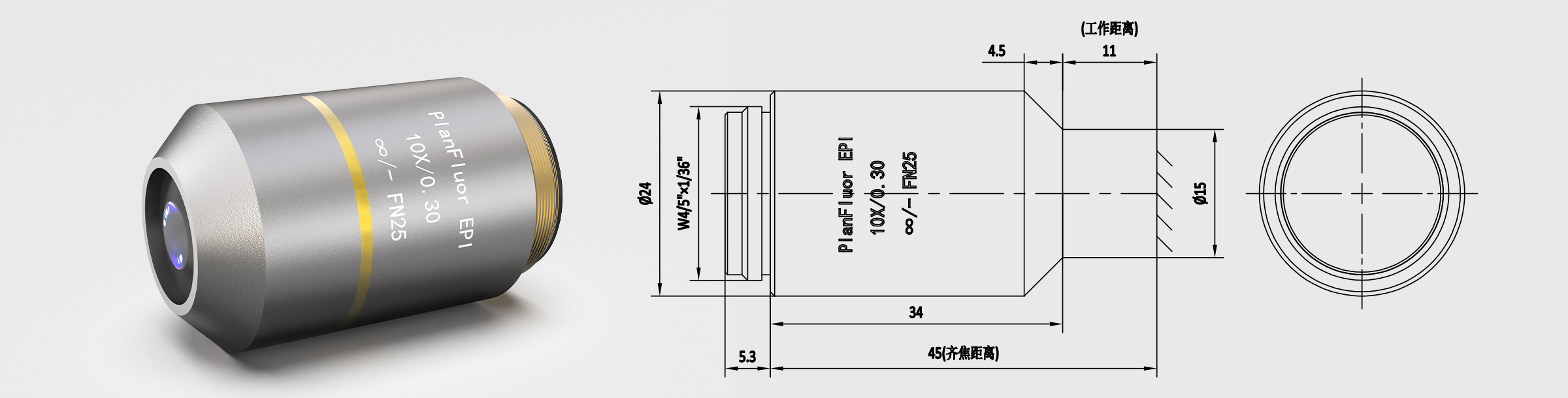 齐焦45mm 明场半复消色差物镜 10X