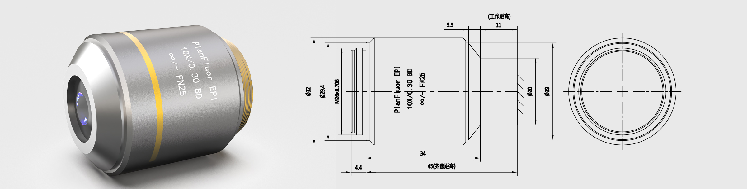 齐焦45mm 明暗场半复消色差物镜 10X