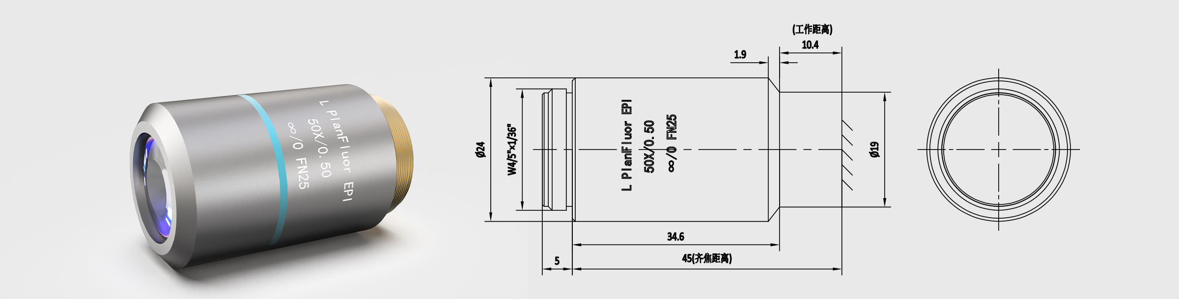 齐焦45mm 长工作距离明场半复消色差物镜 50X