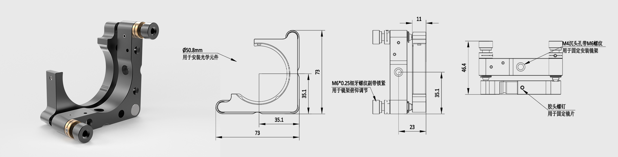 C型开口反射镜架 右手系 夹持镜片尺寸50.8mm 两轴调节