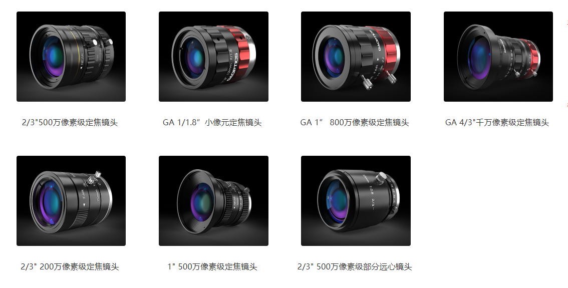 目前与分辨率有关的公开资料可概括为四种类型: 一、描述性资料 描述性资料是指资料只有一个命名或者只有一句描述性的话语:镜头的分辨率为百万像素级别,或500万像素级别,或千万像素级别。 在工业相机传感器并不是十分丰富的阶段,工业镜头只要将性能区分为百万级别像素,500万级别像素即可。工程师只要了解相机的分辨率即可进行选型,但也会存在很明显的缺点——工业镜头的像素概念难以明确,会产生很多自相矛盾的情况。 以这种形式描述镜头分辨的品牌主要集中在中国,日本,且这种命名或描述方式在亚洲市场比较受欢迎,因此部分欧美品牌也开始采用这种描述。下图为联合光科定焦镜头命名形式一览图,详情见“定焦镜头”