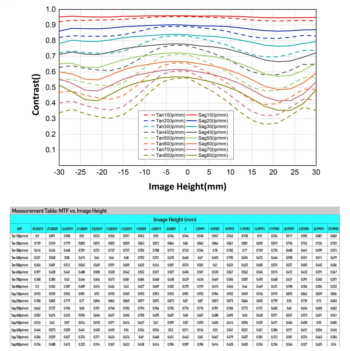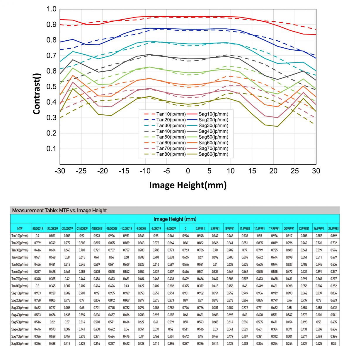 | 以新产品V8K系列线620101为例,其MTF测试报告如下图所示: