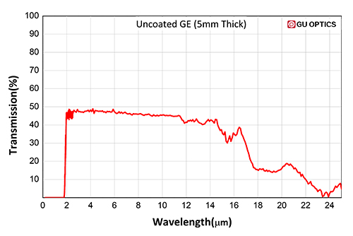 红外紫外窗口片是一种设计用于红外或紫外光谱的窗口片。窗口片设计用于防止电子传感器、检测器或其他敏感光学元件被饱和或出现光损伤现象。锗是一种红外波段常用的光学玻璃材料,透过波段为2.0-16μm,具有高折射率,高努氏硬度等特点。锗对空气、水、酸、碱等均成惰性可用于热成像及恶劣环境下的红外成像。其可以作为多种光学元件的基底,例如透镜、窗口片等。