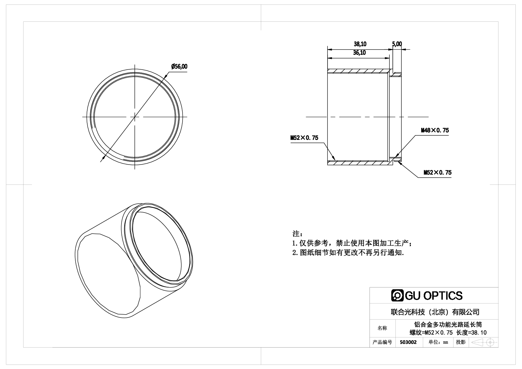 - 端口1-螺纹规格 M52x0.75阳