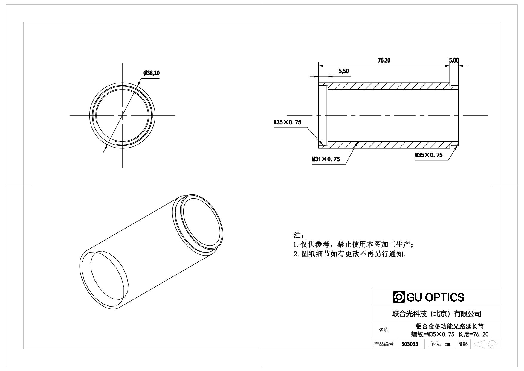 多功能光路延长筒 Ø38.1mm L=76.2mm