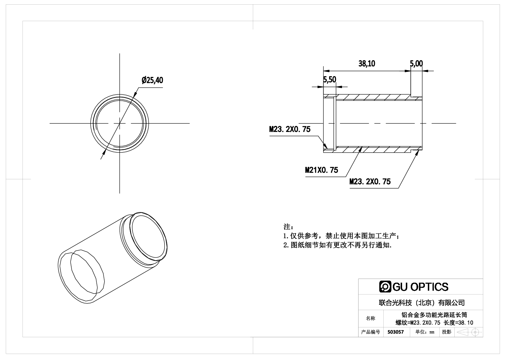 多功能光路延长筒 Ø25.4mm L=38.1mm