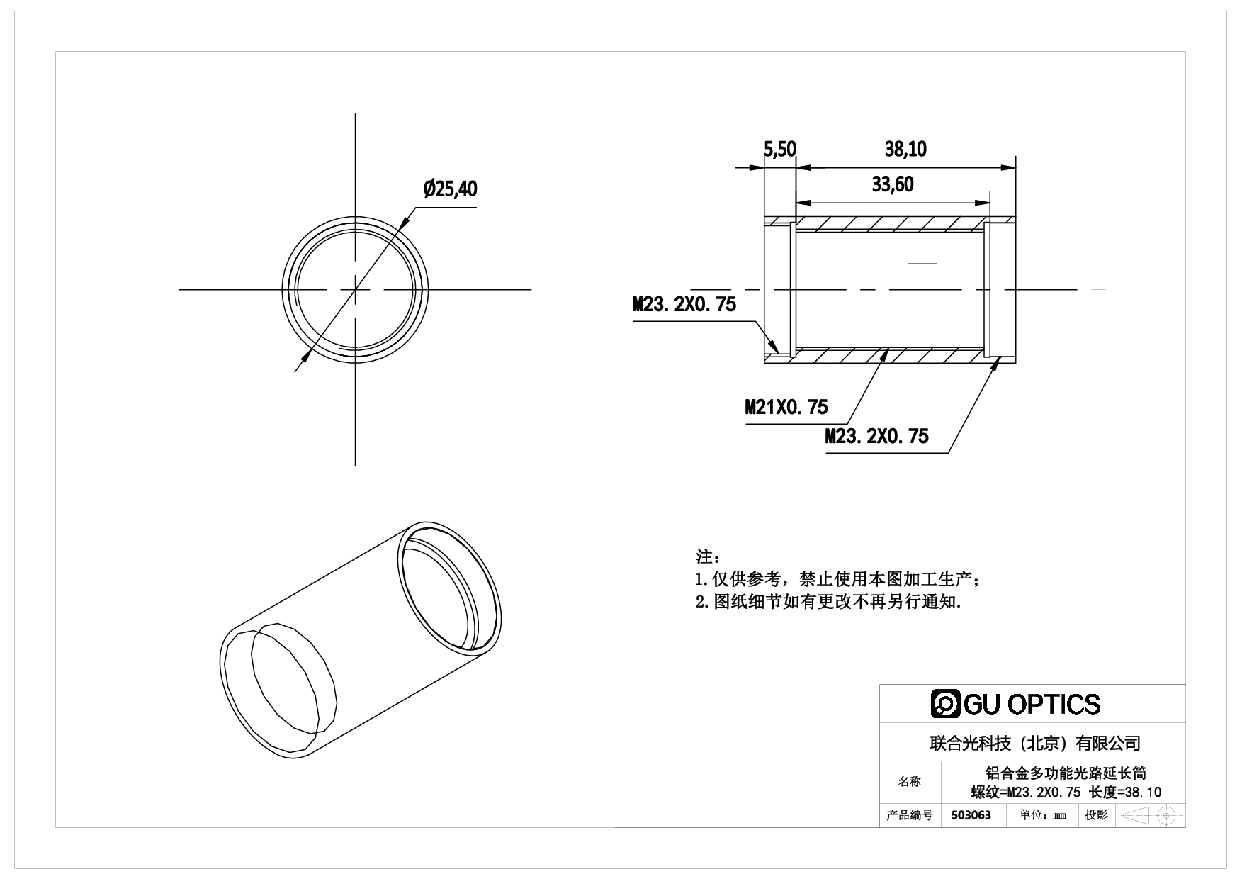 多功能光路延长筒(Multi Purpose Extension Tube)用于光路中,可以方便调整光学器件的空间间隔,配合调焦部件,更可以实现不同光学部件间隔的精密调整。联合光科技提供的多功能光路延长筒内部都有精密车制的标准螺纹,双端都有标准螺纹接口用于和光桥系统所有其他产品的互联。所有多功能光路延长筒内部都有精密车制的标准螺纹,同时双端都有标准螺纹接口用于和光桥系统所有其他产品的互连。 当多功能光路延长筒仅用于延长光路使用时,其内部精密螺纹结构起到消光作用,为光路中杂散光的消除提供了极大的帮助,同时也彻底排除了外界杂散光对光学系统的干扰。当多功能光路延长筒和安装压圈配合使用时,可以将各种标准口径的光学元件安装并固定在延长筒内部。这样为使用者提供了方便且经济的办法,用于镜头原型的设计及试验,或用于复杂光学系统的建立。