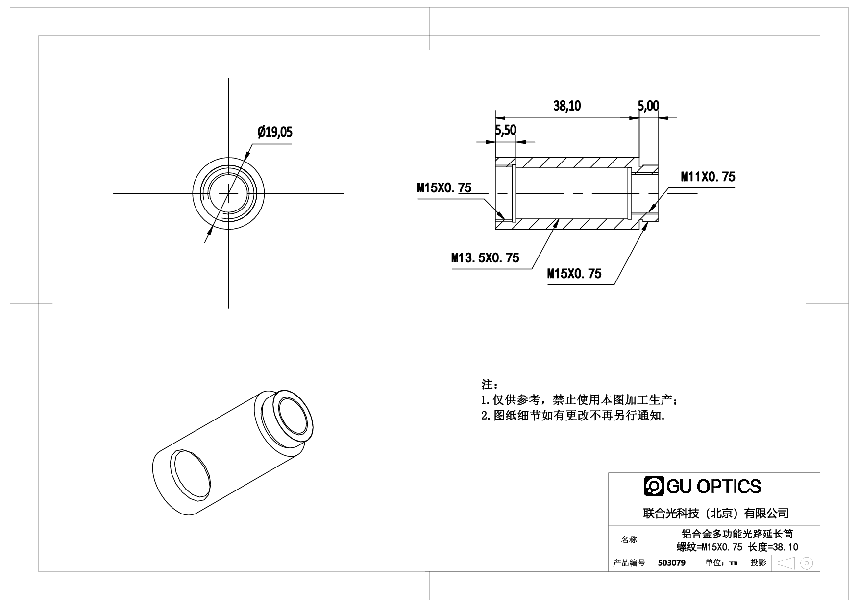 多功能光路延长筒(Multi Purpose Extension Tube)用于光路中,可以方便调整光学器件的空间间隔,配合调焦部件,更可以实现不同光学部件间隔的精密调整。联合光科技提供的多功能光路延长筒内部都有精密车制的标准螺纹,双端都有标准螺纹接口用于和光桥系统所有其他产品的互联。所有多功能光路延长筒内部都有精密车制的标准螺纹,同时双端都有标准螺纹接口用于和光桥系统所有其他产品的互连。 当多功能光路延长筒仅用于延长光路使用时,其内部精密螺纹结构起到消光作用,为光路中杂散光的消除提供了极大的帮助,同时也彻底排除了外界杂散光对光学系统的干扰。当多功能光路延长筒和安装压圈配合使用时,可以将各种标准口径的光学元件安装并固定在延长筒内部。这样为使用者提供了方便且经济的办法,用于镜头原型的设计及试验,或用于复杂光学系统的建立。