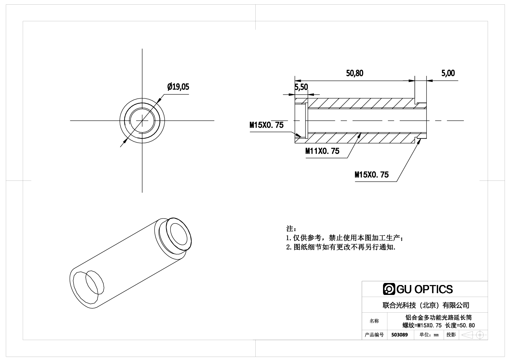 多功能光路延长筒(Multi Purpose Extension Tube)用于光路中,可以方便调整光学器件的空间间隔,配合调焦部件,更可以实现不同光学部件间隔的精密调整。联合光科技提供的多功能光路延长筒内部都有精密车制的标准螺纹,双端都有标准螺纹接口用于和光桥系统所有其他产品的互联。所有多功能光路延长筒内部都有精密车制的标准螺纹,同时双端都有标准螺纹接口用于和光桥系统所有其他产品的互连。 当多功能光路延长筒仅用于延长光路使用时,其内部精密螺纹结构起到消光作用,为光路中杂散光的消除提供了极大的帮助,同时也彻底排除了外界杂散光对光学系统的干扰。当多功能光路延长筒和安装压圈配合使用时,可以将各种标准口径的光学元件安装并固定在延长筒内部。这样为使用者提供了方便且经济的办法,用于镜头原型的设计及试验,或用于复杂光学系统的建立。