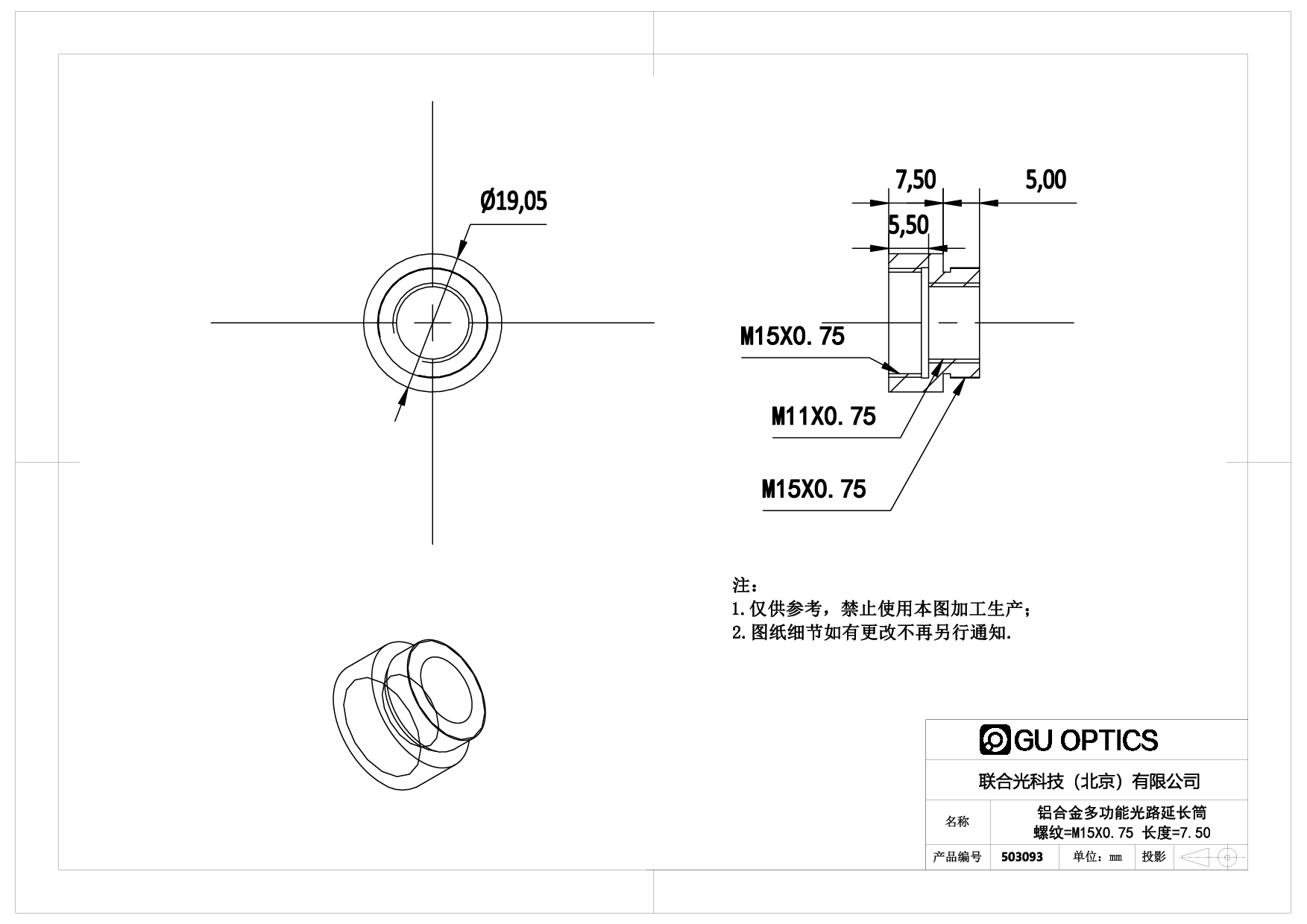 多功能光路延长筒 Ø19.05mm L=7.5mm