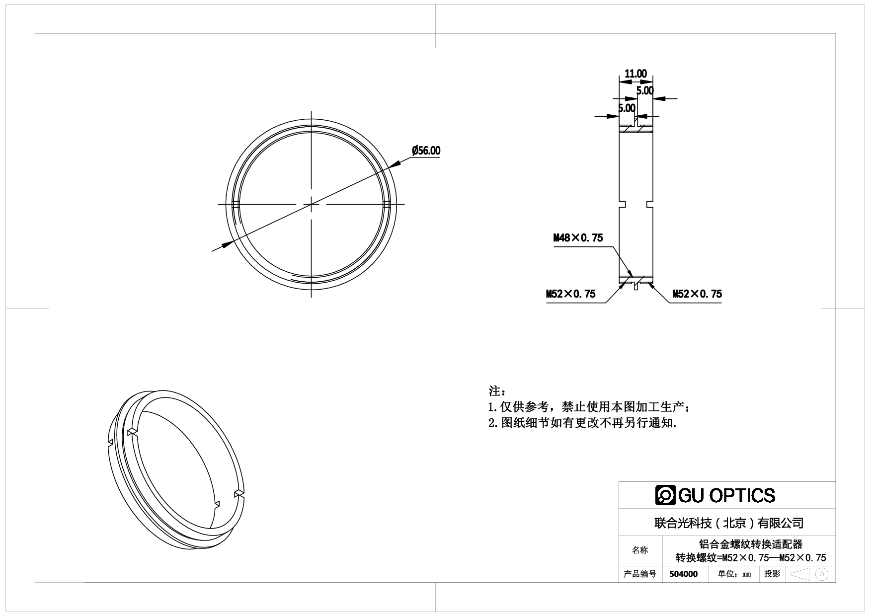 螺纹转换适配器 Ø56mm L=11mm