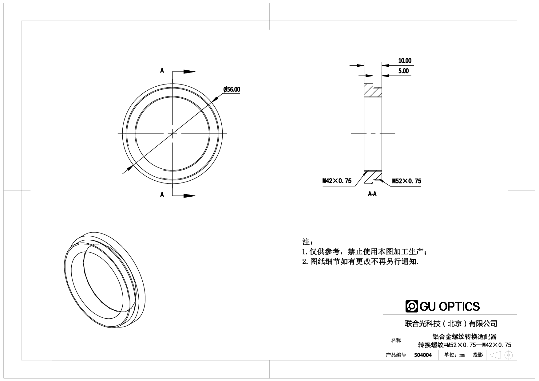 所有螺纹转换适配器都采用精密CNC数控加工,具有极高的尺寸精度以及良好的同心度和一致性,可使不同部件相互连接后的整体光路同轴。螺纹转换器还提供了和其他通用品牌的实验室光机部件之间的螺纹转换适配器(光桥系统和SM1、SM2、SM05匹配连接的螺纹转换接口等)。用户可以方便的将光桥系列产品应用到已经使用的光学架构系统中,从而节省从国内外采购同类产品的昂贵成本。