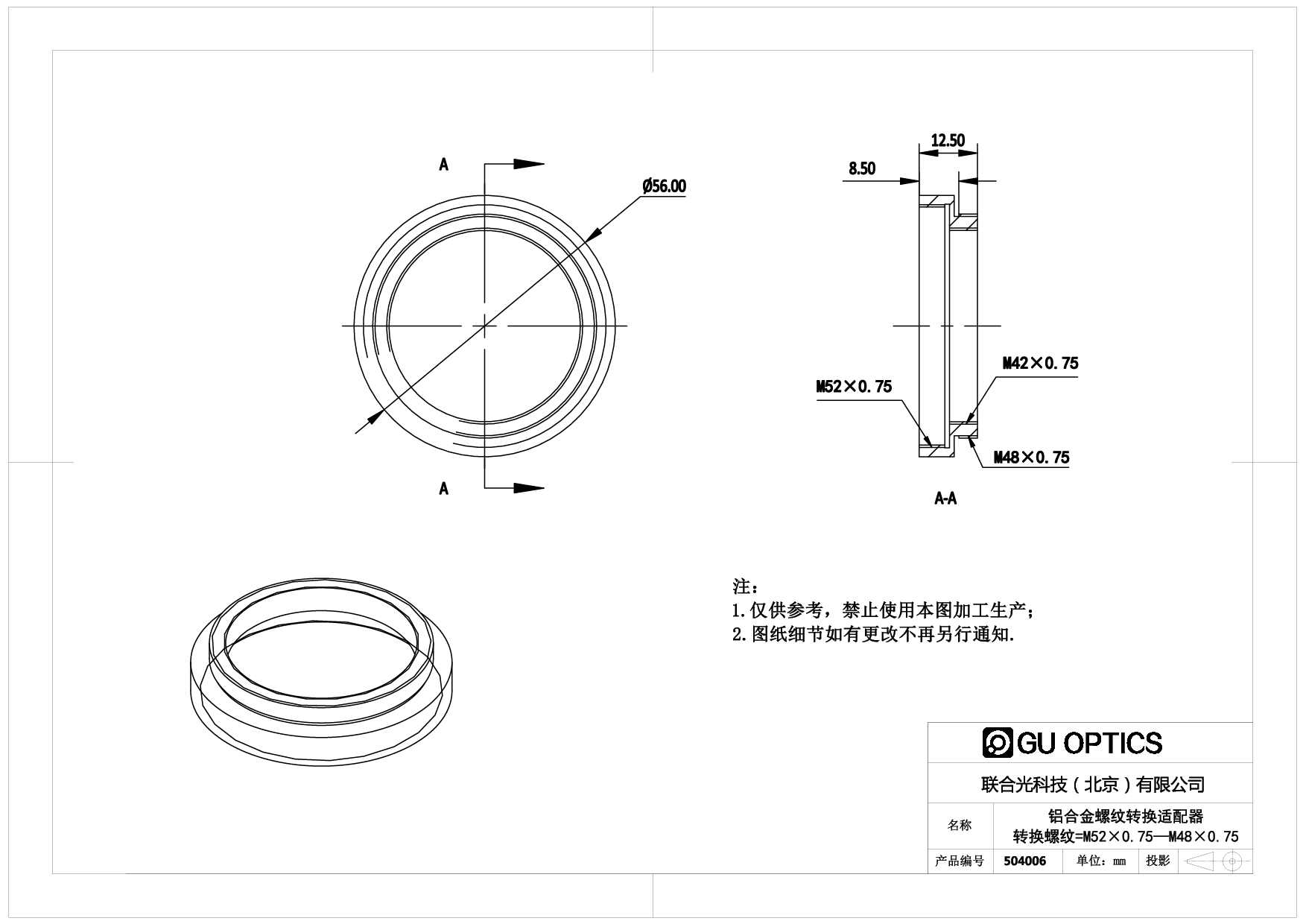 - 端口1--螺纹规格 M52x0.75阴