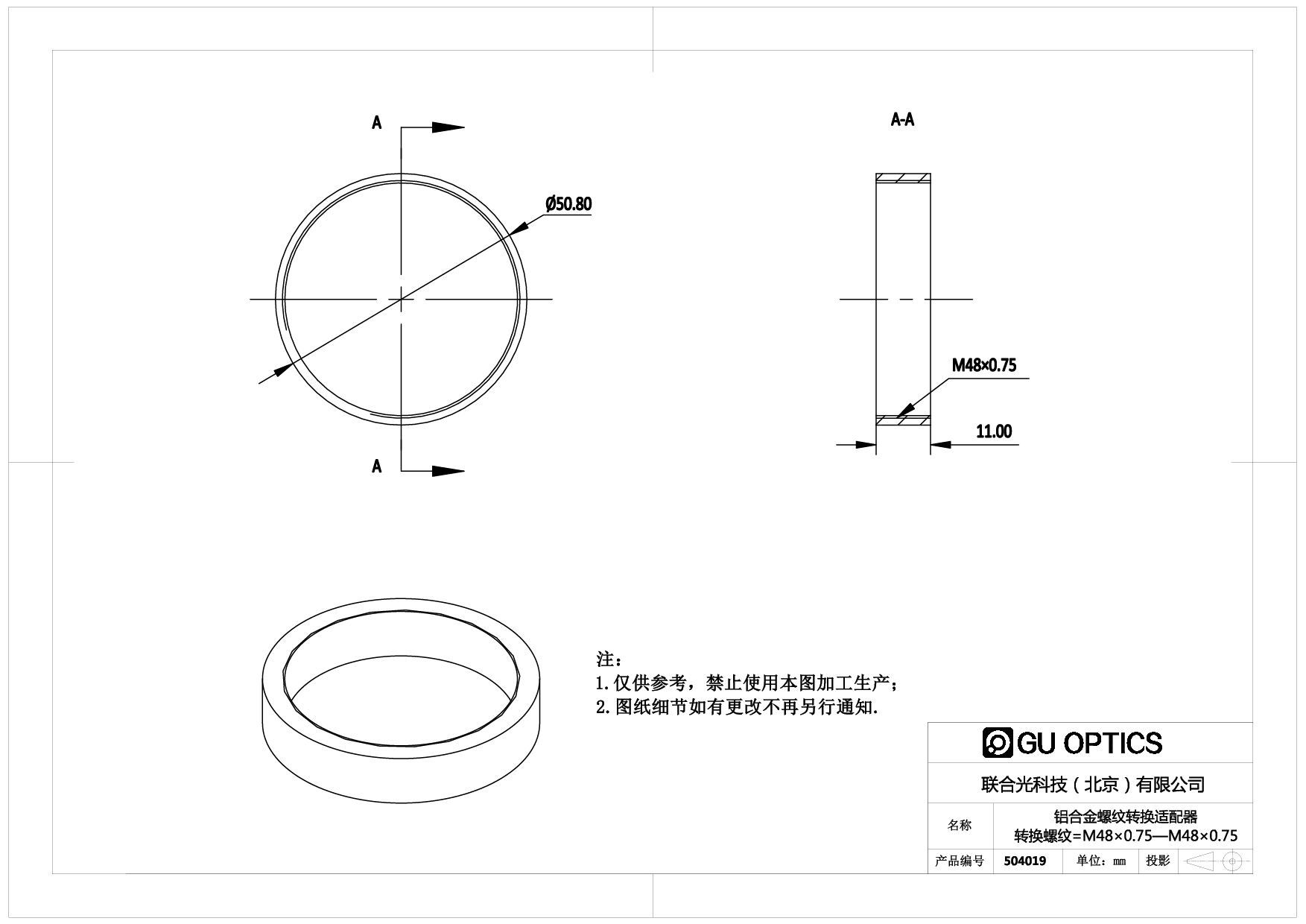 所有螺纹转换适配器都采用精密CNC数控加工,具有极高的尺寸精度以及良好的同心度和一致性,可使不同部件相互连接后的整体光路同轴。螺纹转换器还提供了和其他通用品牌的实验室光机部件之间的螺纹转换适配器(光桥系统和SM1、SM2、SM05匹配连接的螺纹转换接口等)。用户可以方便的将光桥系列产品应用到已经使用的光学架构系统中,从而节省从国内外采购同类产品的昂贵成本。