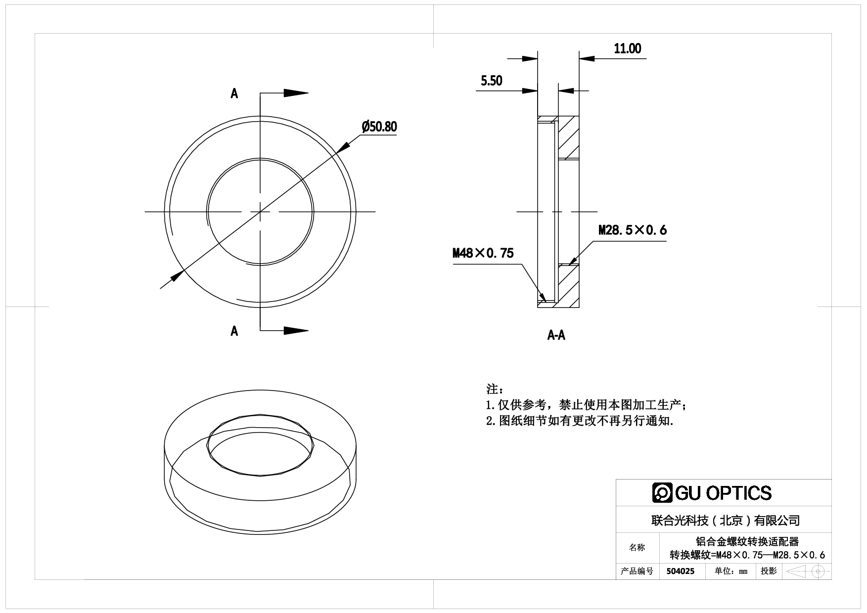 所有螺纹转换适配器都采用精密CNC数控加工,具有极高的尺寸精度以及良好的同心度和一致性,可使不同部件相互连接后的整体光路同轴。螺纹转换器还提供了和其他通用品牌的实验室光机部件之间的螺纹转换适配器(光桥系统和SM1、SM2、SM05匹配连接的螺纹转换接口等)。用户可以方便的将光桥系列产品应用到已经使用的光学架构系统中,从而节省从国内外采购同类产品的昂贵成本。