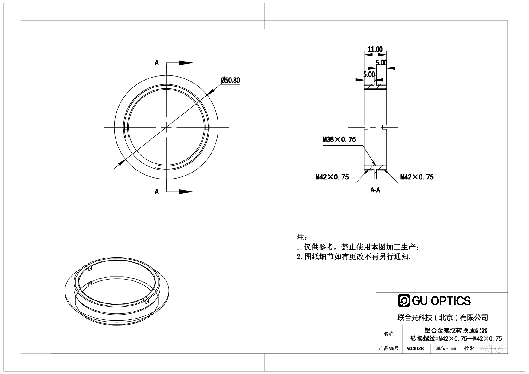 螺纹转换适配器 Ø50.8mm L=11mm