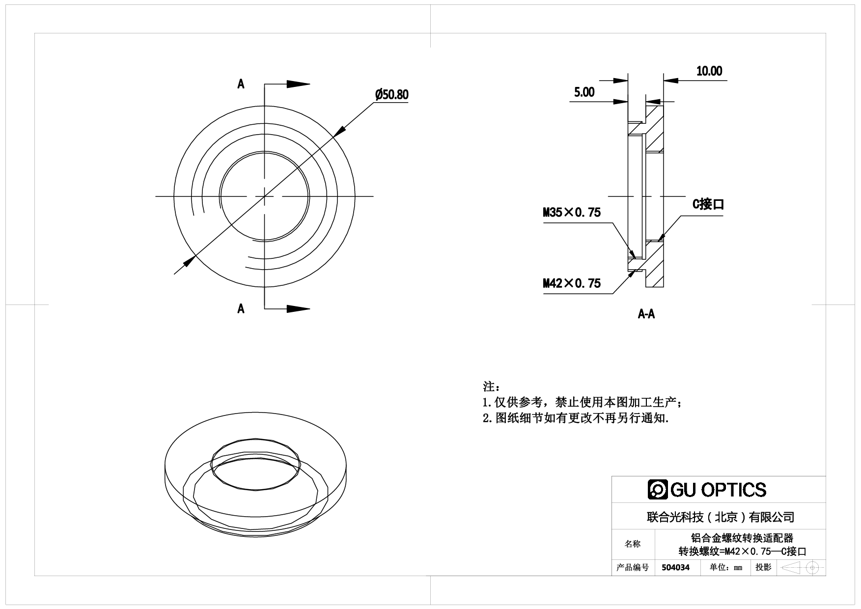 所有螺纹转换适配器都采用精密CNC数控加工,具有极高的尺寸精度以及良好的同心度和一致性,可使不同部件相互连接后的整体光路同轴。螺纹转换器还提供了和其他通用品牌的实验室光机部件之间的螺纹转换适配器(光桥系统和SM1、SM2、SM05匹配连接的螺纹转换接口等)。用户可以方便的将光桥系列产品应用到已经使用的光学架构系统中,从而节省从国内外采购同类产品的昂贵成本。