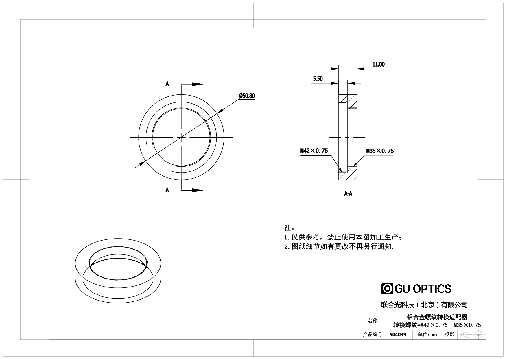 所有螺纹转换适配器都采用精密CNC数控加工,具有极高的尺寸精度以及良好的同心度和一致性,可使不同部件相互连接后的整体光路同轴。螺纹转换器还提供了和其他通用品牌的实验室光机部件之间的螺纹转换适配器(光桥系统和SM1、SM2、SM05匹配连接的螺纹转换接口等)。用户可以方便的将光桥系列产品应用到已经使用的光学架构系统中,从而节省从国内外采购同类产品的昂贵成本。