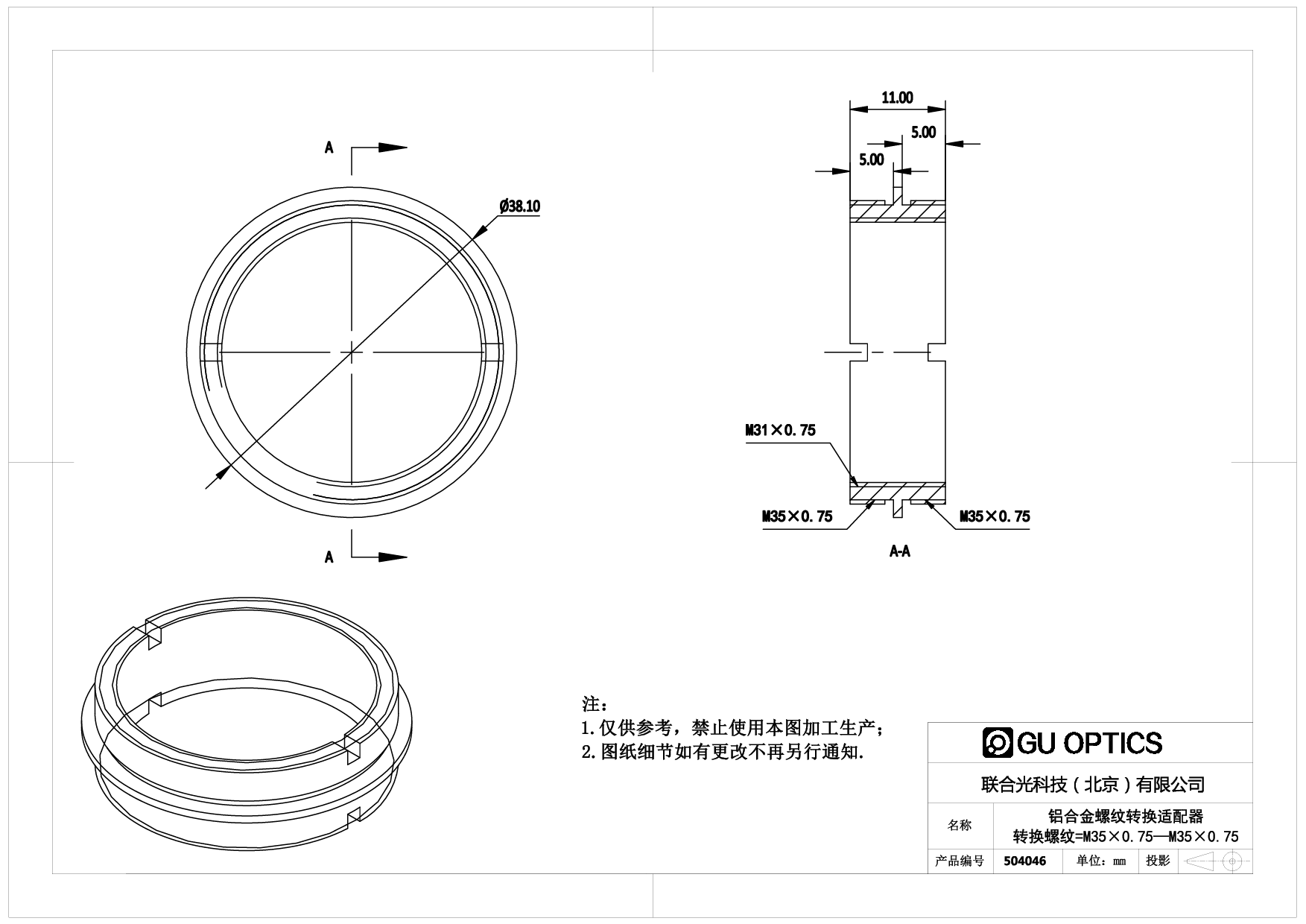 所有螺纹转换适配器都采用精密CNC数控加工,具有极高的尺寸精度以及良好的同心度和一致性,可使不同部件相互连接后的整体光路同轴。螺纹转换器还提供了和其他通用品牌的实验室光机部件之间的螺纹转换适配器(光桥系统和SM1、SM2、SM05匹配连接的螺纹转换接口等)。用户可以方便的将光桥系列产品应用到已经使用的光学架构系统中,从而节省从国内外采购同类产品的昂贵成本。