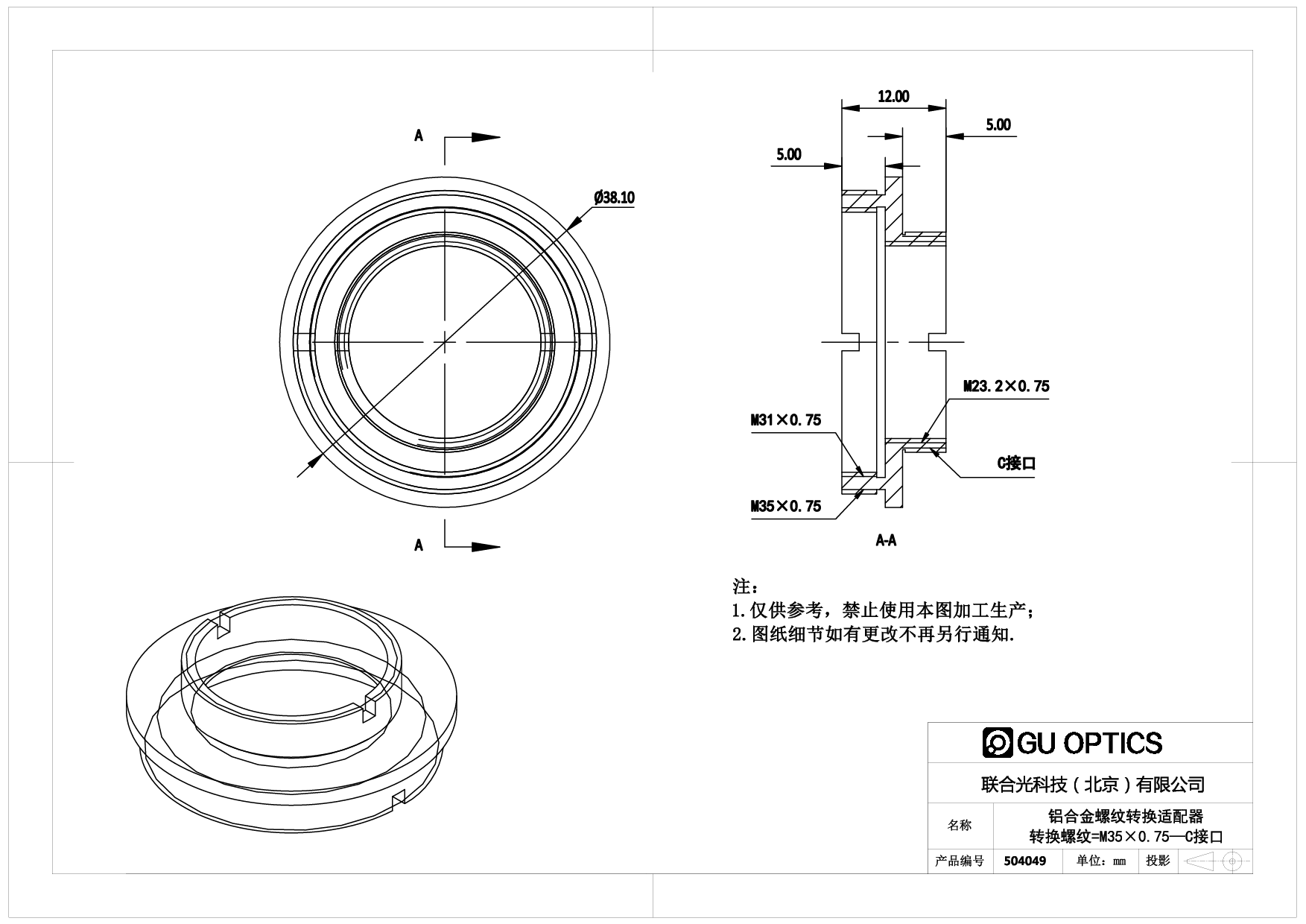 螺纹转换适配器(Thread adapter)提供了全系列的螺纹转换适配器,便于所有光桥系统产品间的连接及转换,以及和其他标准接口部件的连接及转换(如使用者常用的C 接口部件、国际通用的DIN显微物镜RMS接口等)。