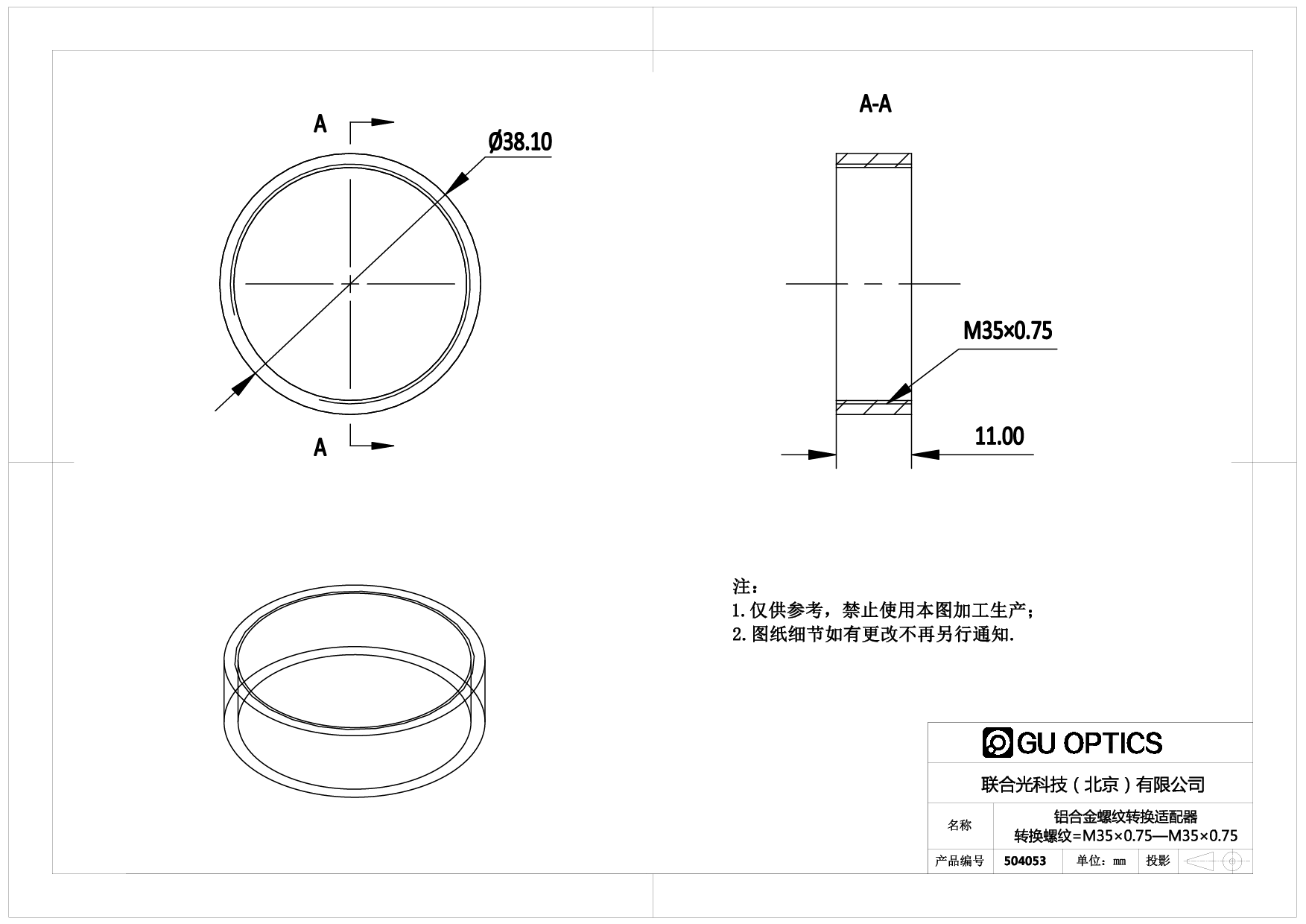 所有螺纹转换适配器都采用精密CNC数控加工,具有极高的尺寸精度以及良好的同心度和一致性,可使不同部件相互连接后的整体光路同轴。螺纹转换器还提供了和其他通用品牌的实验室光机部件之间的螺纹转换适配器(光桥系统和SM1、SM2、SM05匹配连接的螺纹转换接口等)。用户可以方便的将光桥系列产品应用到已经使用的光学架构系统中,从而节省从国内外采购同类产品的昂贵成本。