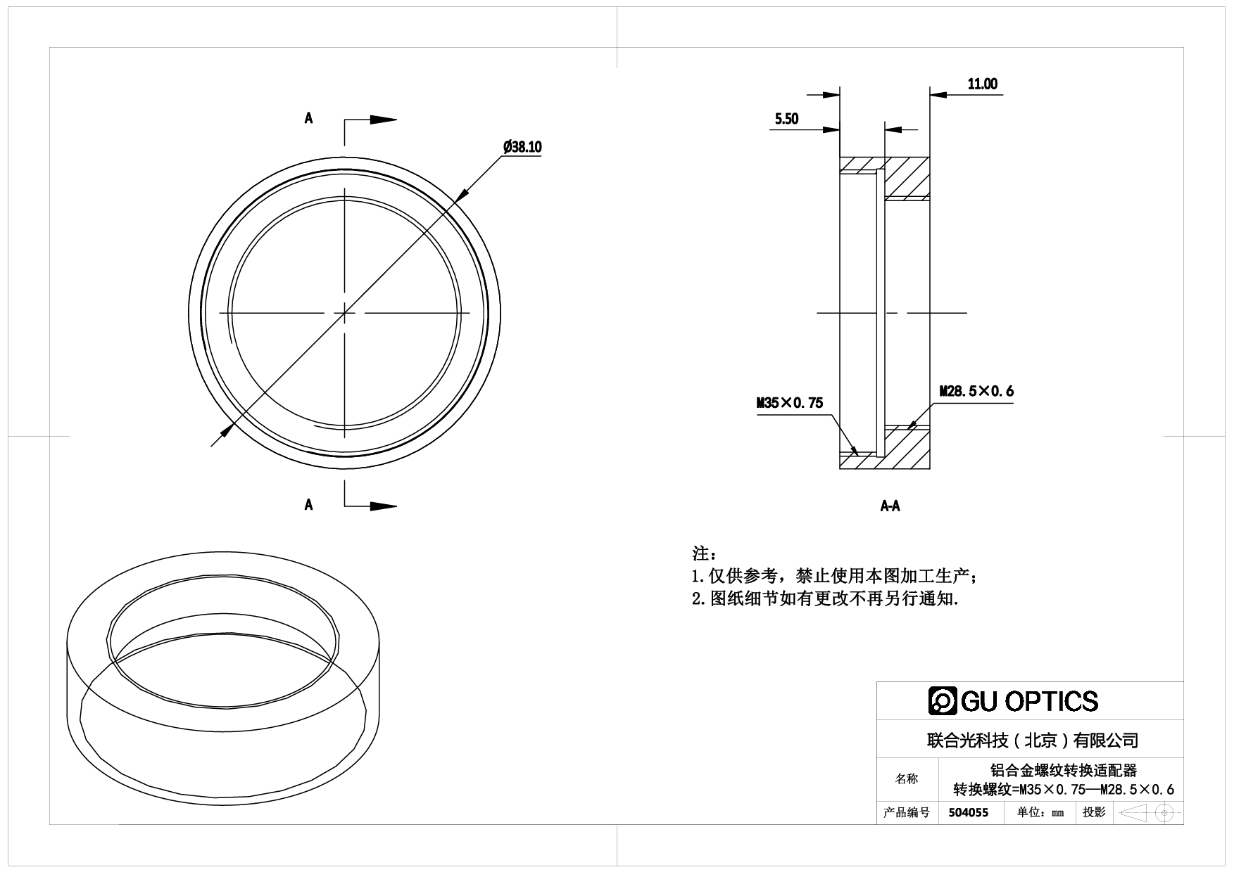 所有螺纹转换适配器都采用精密CNC数控加工,具有极高的尺寸精度以及良好的同心度和一致性,可使不同部件相互连接后的整体光路同轴。螺纹转换器还提供了和其他通用品牌的实验室光机部件之间的螺纹转换适配器(光桥系统和SM1、SM2、SM05匹配连接的螺纹转换接口等)。用户可以方便的将光桥系列产品应用到已经使用的光学架构系统中,从而节省从国内外采购同类产品的昂贵成本。