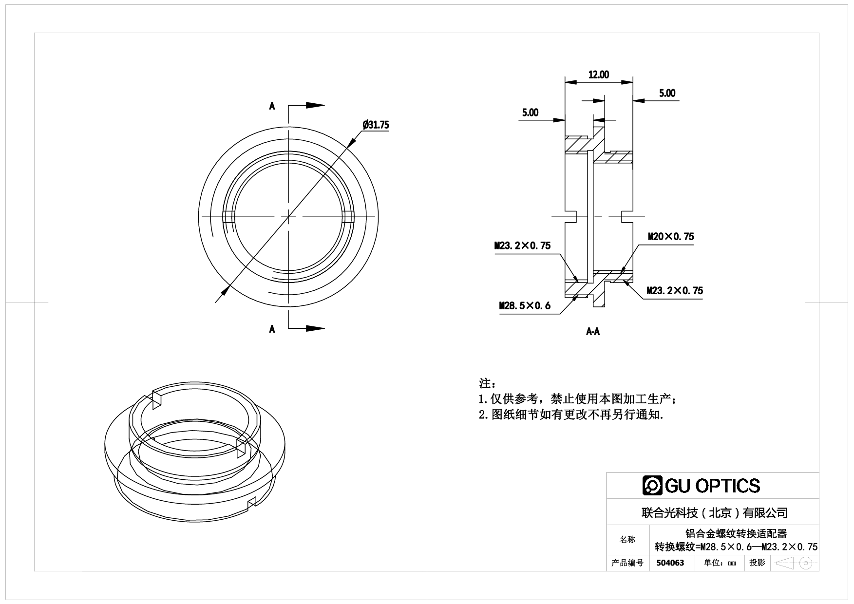所有螺纹转换适配器都采用精密CNC数控加工,具有极高的尺寸精度以及良好的同心度和一致性,可使不同部件相互连接后的整体光路同轴。螺纹转换器还提供了和其他通用品牌的实验室光机部件之间的螺纹转换适配器(光桥系统和SM1、SM2、SM05匹配连接的螺纹转换接口等)。用户可以方便的将光桥系列产品应用到已经使用的光学架构系统中,从而节省从国内外采购同类产品的昂贵成本。