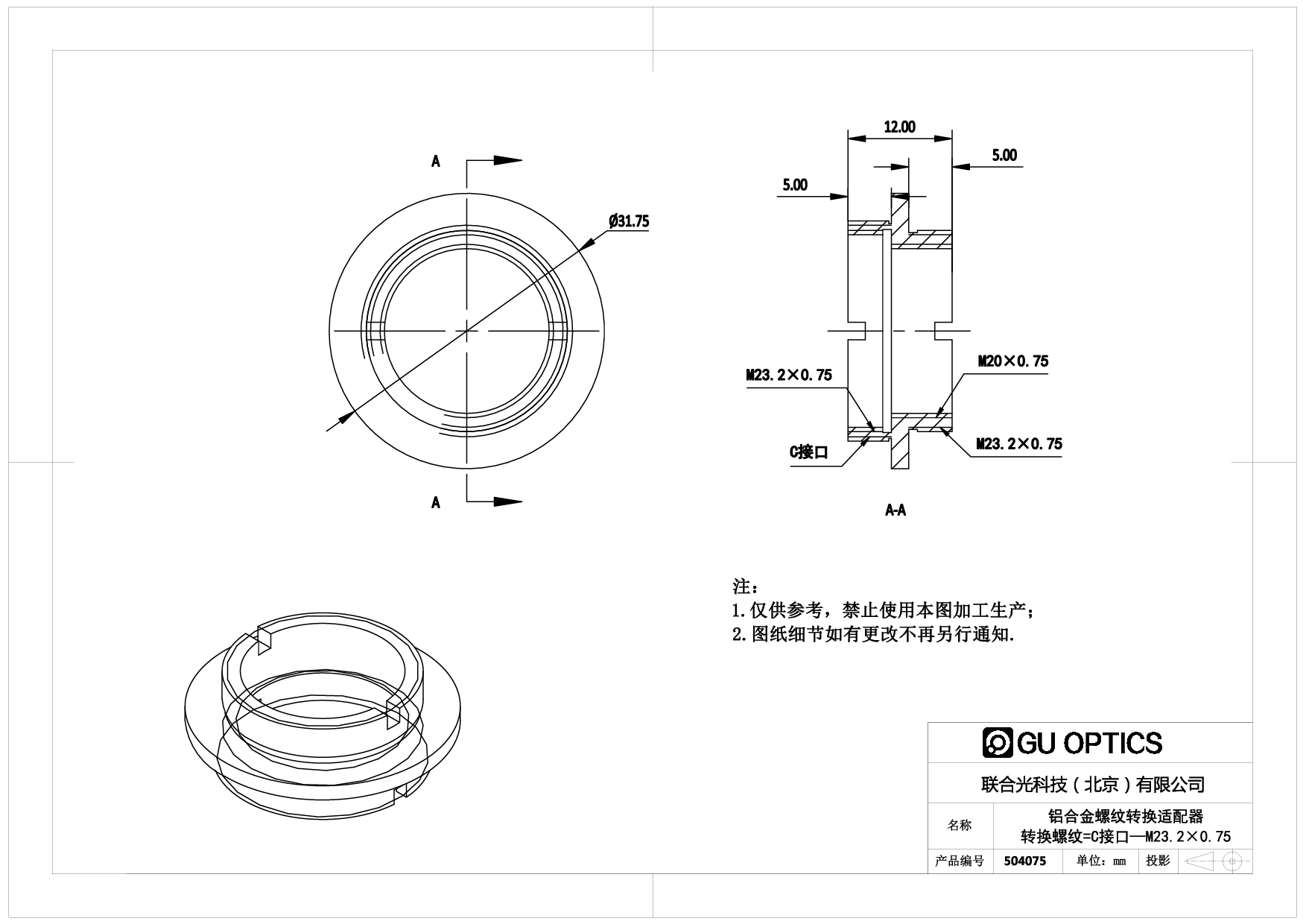 所有螺纹转换适配器都采用精密CNC数控加工,具有极高的尺寸精度以及良好的同心度和一致性,可使不同部件相互连接后的整体光路同轴。螺纹转换器还提供了和其他通用品牌的实验室光机部件之间的螺纹转换适配器(光桥系统和SM1、SM2、SM05匹配连接的螺纹转换接口等)。用户可以方便的将光桥系列产品应用到已经使用的光学架构系统中,从而节省从国内外采购同类产品的昂贵成本。