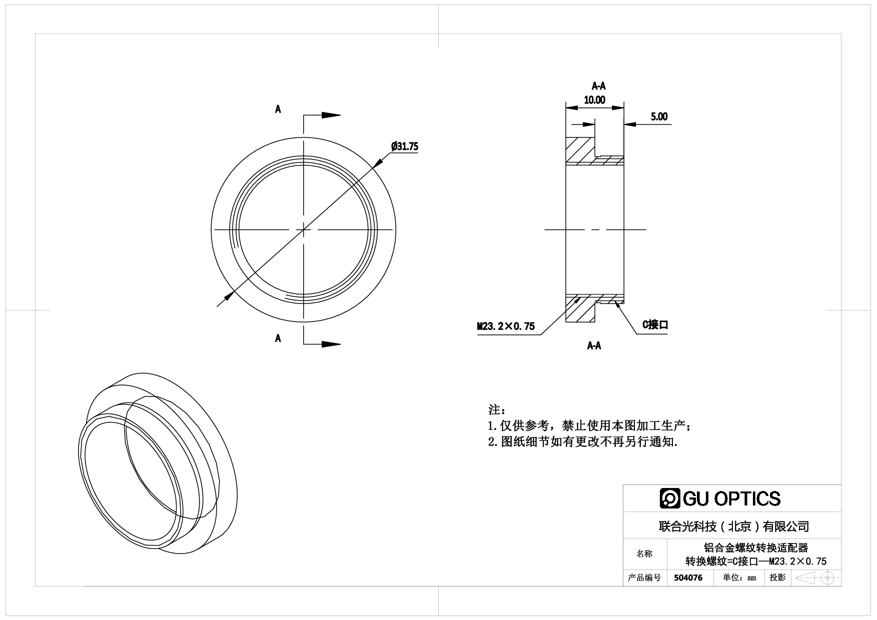 所有螺纹转换适配器都采用精密CNC数控加工,具有极高的尺寸精度以及良好的同心度和一致性,可使不同部件相互连接后的整体光路同轴。螺纹转换器还提供了和其他通用品牌的实验室光机部件之间的螺纹转换适配器(光桥系统和SM1、SM2、SM05匹配连接的螺纹转换接口等)。用户可以方便的将光桥系列产品应用到已经使用的光学架构系统中,从而节省从国内外采购同类产品的昂贵成本。