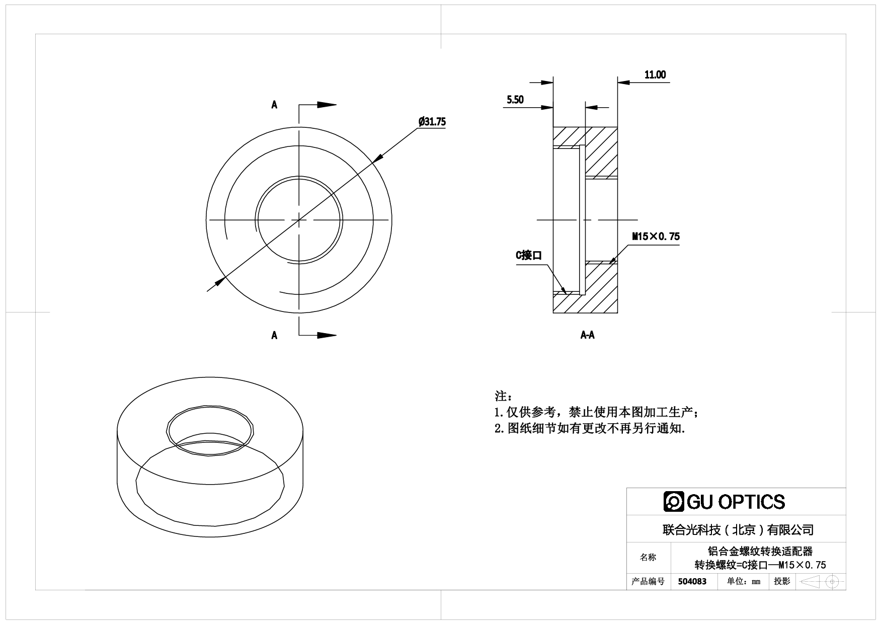 所有螺纹转换适配器都采用精密CNC数控加工,具有极高的尺寸精度以及良好的同心度和一致性,可使不同部件相互连接后的整体光路同轴。螺纹转换器还提供了和其他通用品牌的实验室光机部件之间的螺纹转换适配器(光桥系统和SM1、SM2、SM05匹配连接的螺纹转换接口等)。用户可以方便的将光桥系列产品应用到已经使用的光学架构系统中,从而节省从国内外采购同类产品的昂贵成本。