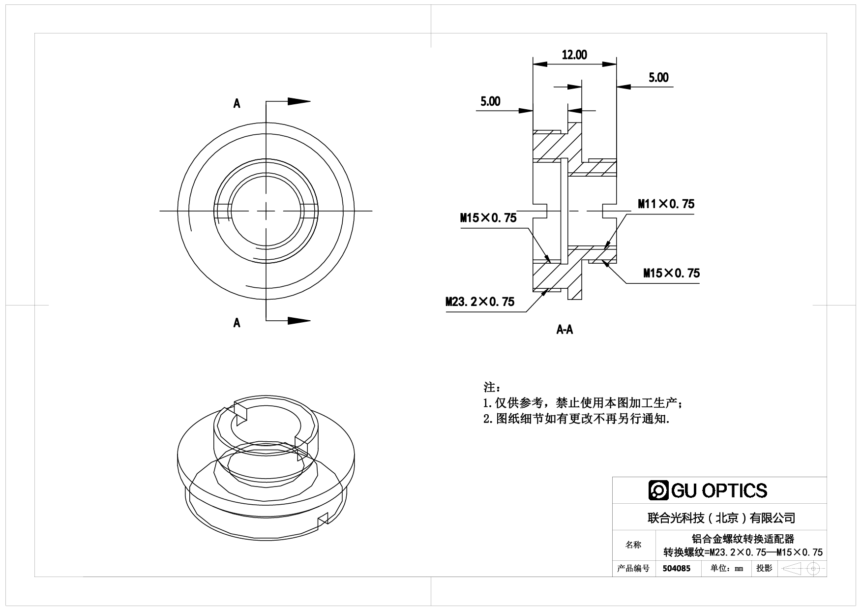 所有螺纹转换适配器都采用精密CNC数控加工,具有极高的尺寸精度以及良好的同心度和一致性,可使不同部件相互连接后的整体光路同轴。螺纹转换器还提供了和其他通用品牌的实验室光机部件之间的螺纹转换适配器(光桥系统和SM1、SM2、SM05匹配连接的螺纹转换接口等)。用户可以方便的将光桥系列产品应用到已经使用的光学架构系统中,从而节省从国内外采购同类产品的昂贵成本。