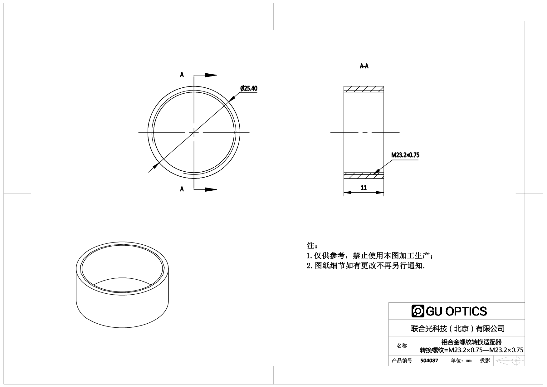 所有螺纹转换适配器都采用精密CNC数控加工,具有极高的尺寸精度以及良好的同心度和一致性,可使不同部件相互连接后的整体光路同轴。螺纹转换器还提供了和其他通用品牌的实验室光机部件之间的螺纹转换适配器(光桥系统和SM1、SM2、SM05匹配连接的螺纹转换接口等)。用户可以方便的将光桥系列产品应用到已经使用的光学架构系统中,从而节省从国内外采购同类产品的昂贵成本。