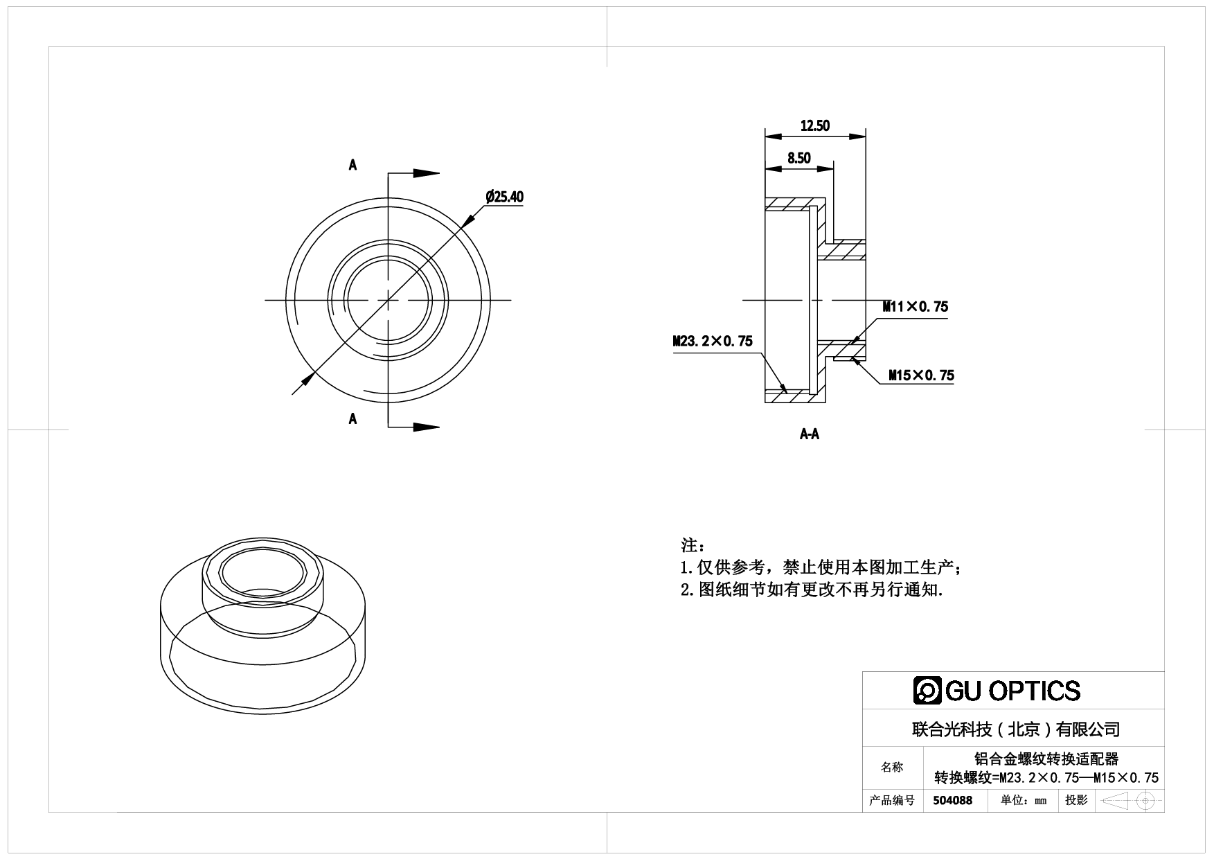 螺纹转换适配器 Ø25.4mm L=12.5mm