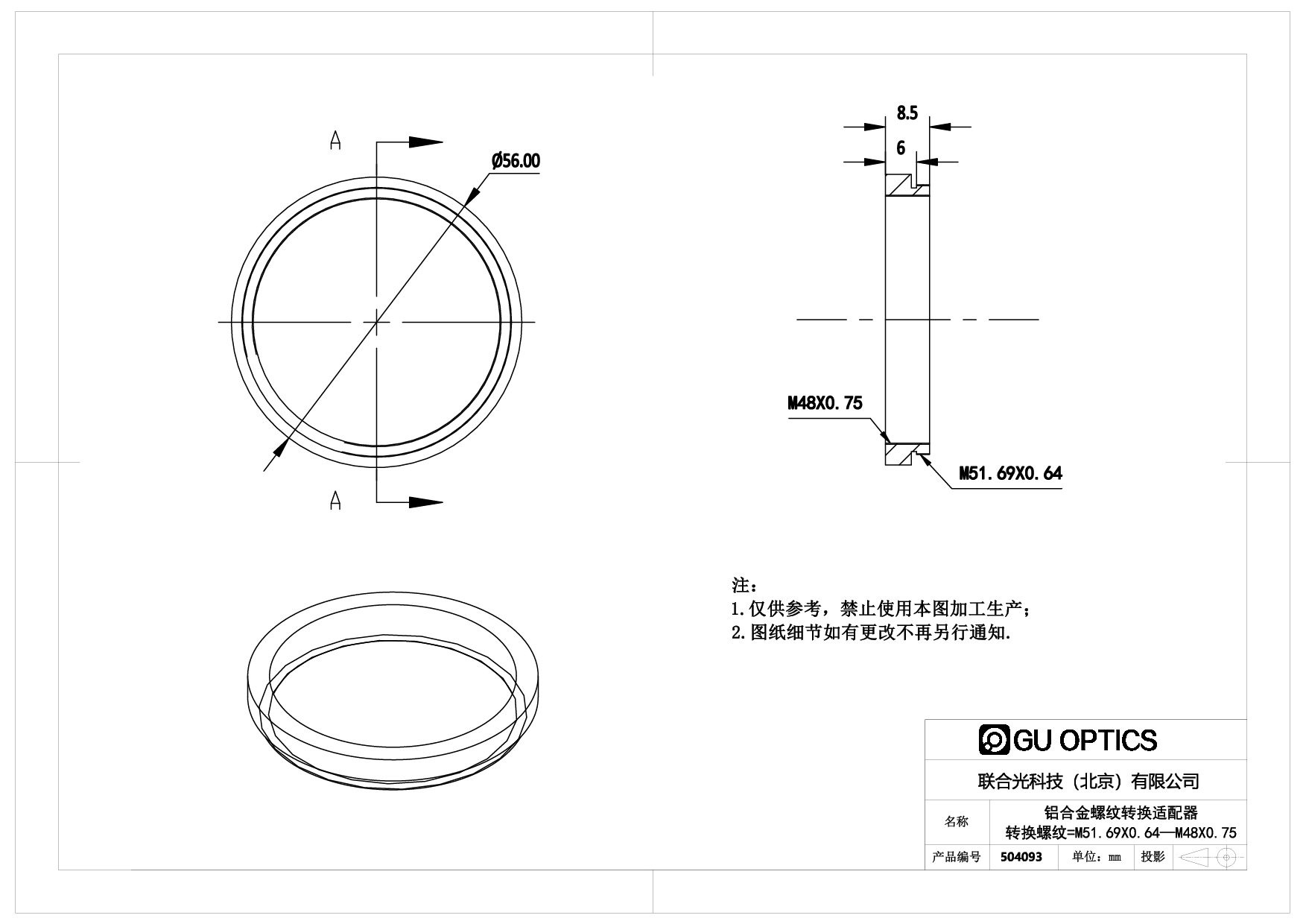 所有螺纹转换适配器都采用精密CNC数控加工,具有极高的尺寸精度以及良好的同心度和一致性,可使不同部件相互连接后的整体光路同轴。螺纹转换器还提供了和其他通用品牌的实验室光机部件之间的螺纹转换适配器(光桥系统和SM1、SM2、SM05匹配连接的螺纹转换接口等)。用户可以方便的将光桥系列产品应用到已经使用的光学架构系统中,从而节省从国内外采购同类产品的昂贵成本。