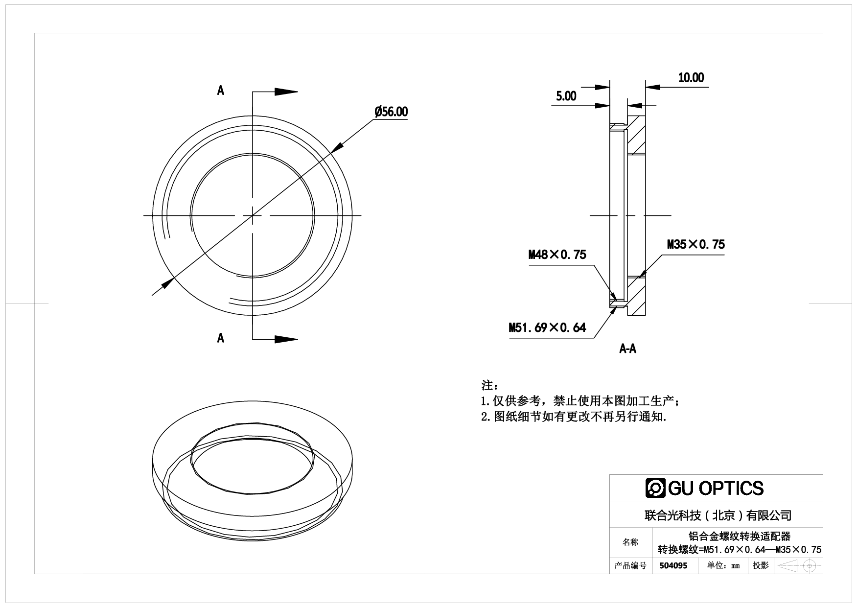 所有螺纹转换适配器都采用精密CNC数控加工,具有极高的尺寸精度以及良好的同心度和一致性,可使不同部件相互连接后的整体光路同轴。螺纹转换器还提供了和其他通用品牌的实验室光机部件之间的螺纹转换适配器(光桥系统和SM1、SM2、SM05匹配连接的螺纹转换接口等)。用户可以方便的将光桥系列产品应用到已经使用的光学架构系统中,从而节省从国内外采购同类产品的昂贵成本。