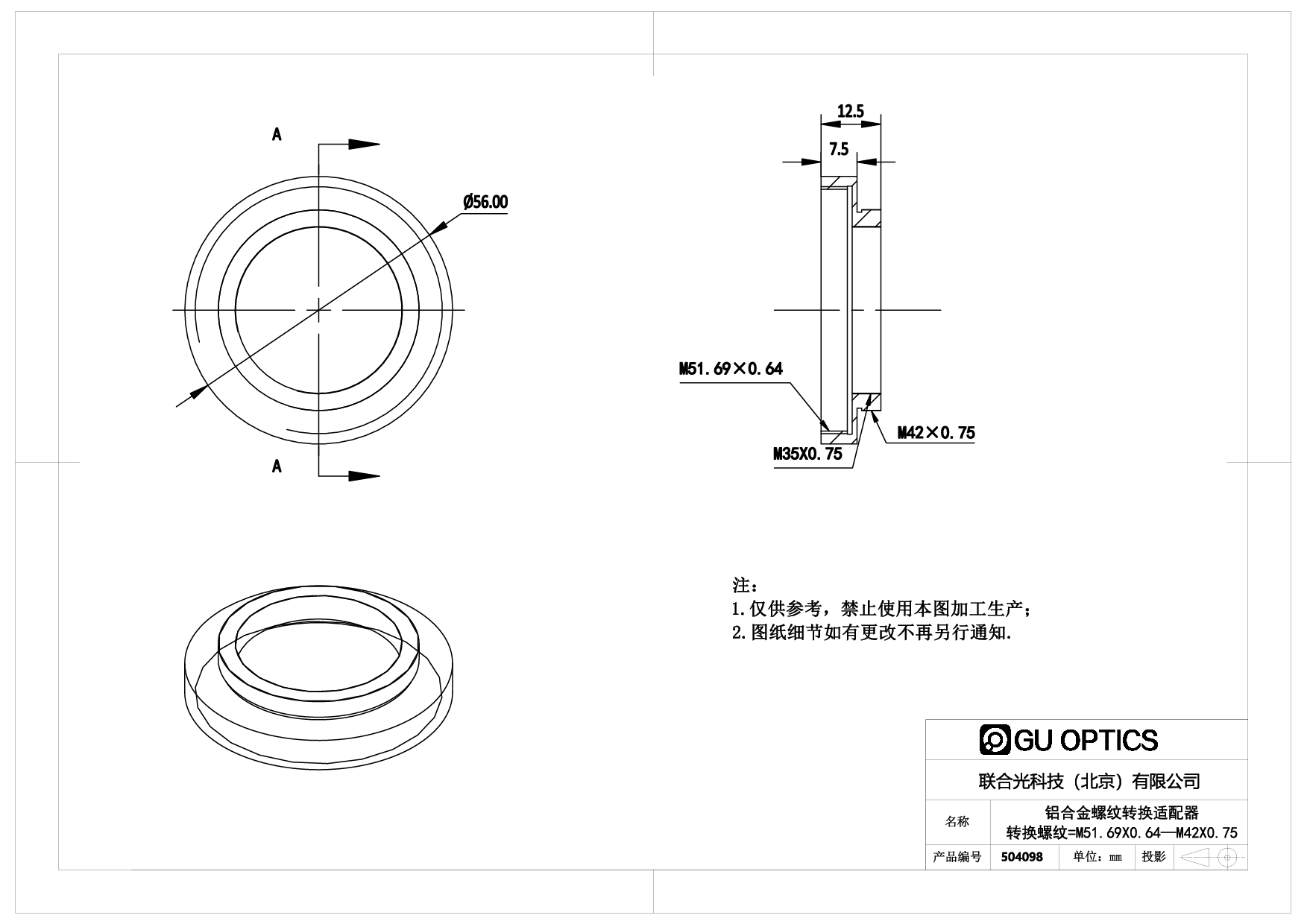所有螺纹转换适配器都采用精密CNC数控加工,具有极高的尺寸精度以及良好的同心度和一致性,可使不同部件相互连接后的整体光路同轴。螺纹转换器还提供了和其他通用品牌的实验室光机部件之间的螺纹转换适配器(光桥系统和SM1、SM2、SM05匹配连接的螺纹转换接口等)。用户可以方便的将光桥系列产品应用到已经使用的光学架构系统中,从而节省从国内外采购同类产品的昂贵成本。