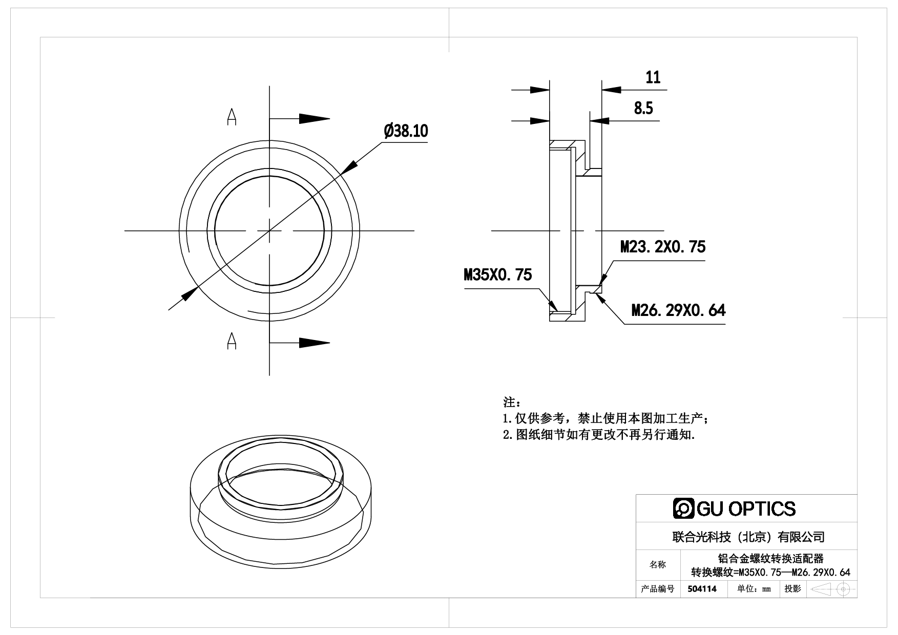 所有螺纹转换适配器都采用精密CNC数控加工,具有极高的尺寸精度以及良好的同心度和一致性,可使不同部件相互连接后的整体光路同轴。螺纹转换器还提供了和其他通用品牌的实验室光机部件之间的螺纹转换适配器(光桥系统和SM1、SM2、SM05匹配连接的螺纹转换接口等)。用户可以方便的将光桥系列产品应用到已经使用的光学架构系统中,从而节省从国内外采购同类产品的昂贵成本。